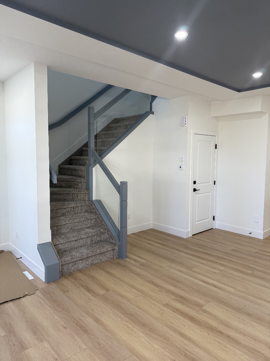 This brand-new, 2-storey half duplex features a modern open-concept living area with quartz countertops and a main-floor bedroom with a 3-piece bathroom. Upstairs, you'll find three bedrooms, including a Primary with an ensuite and walk-in closet, plus a laundry room and a 4-piece bathroom. The property also includes a 2-bedroom legal suite and a double detached garage.