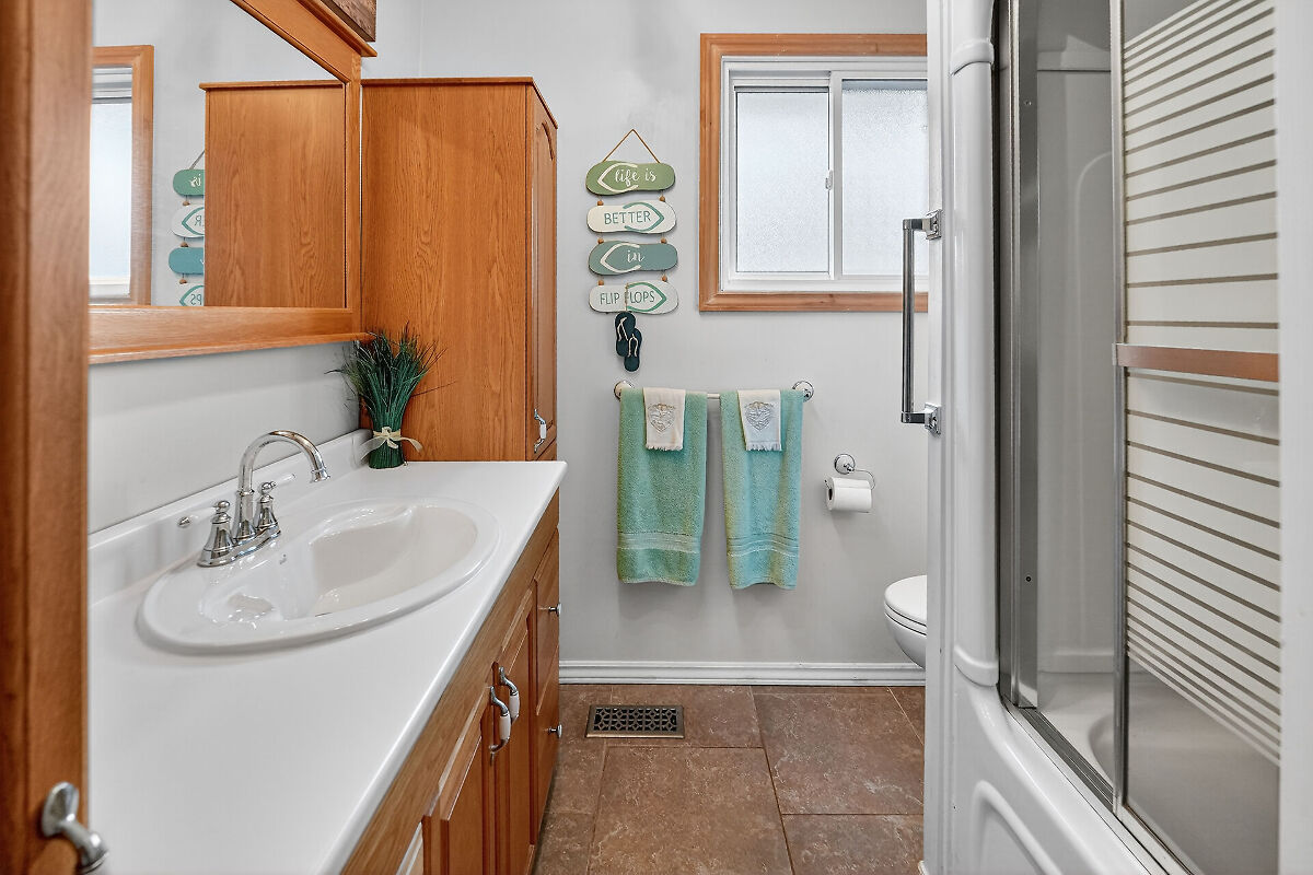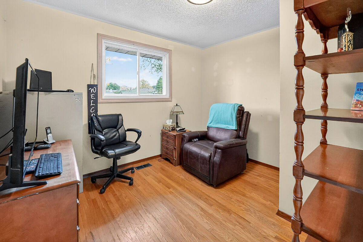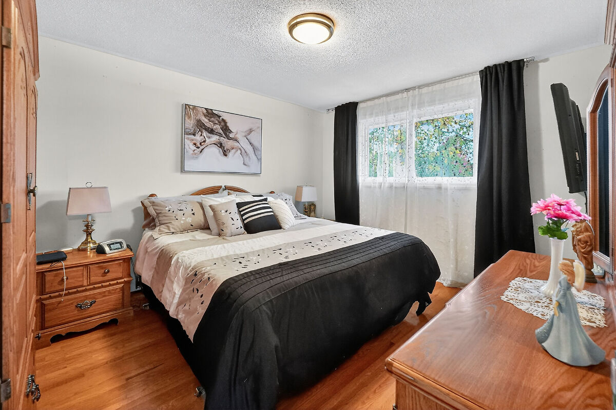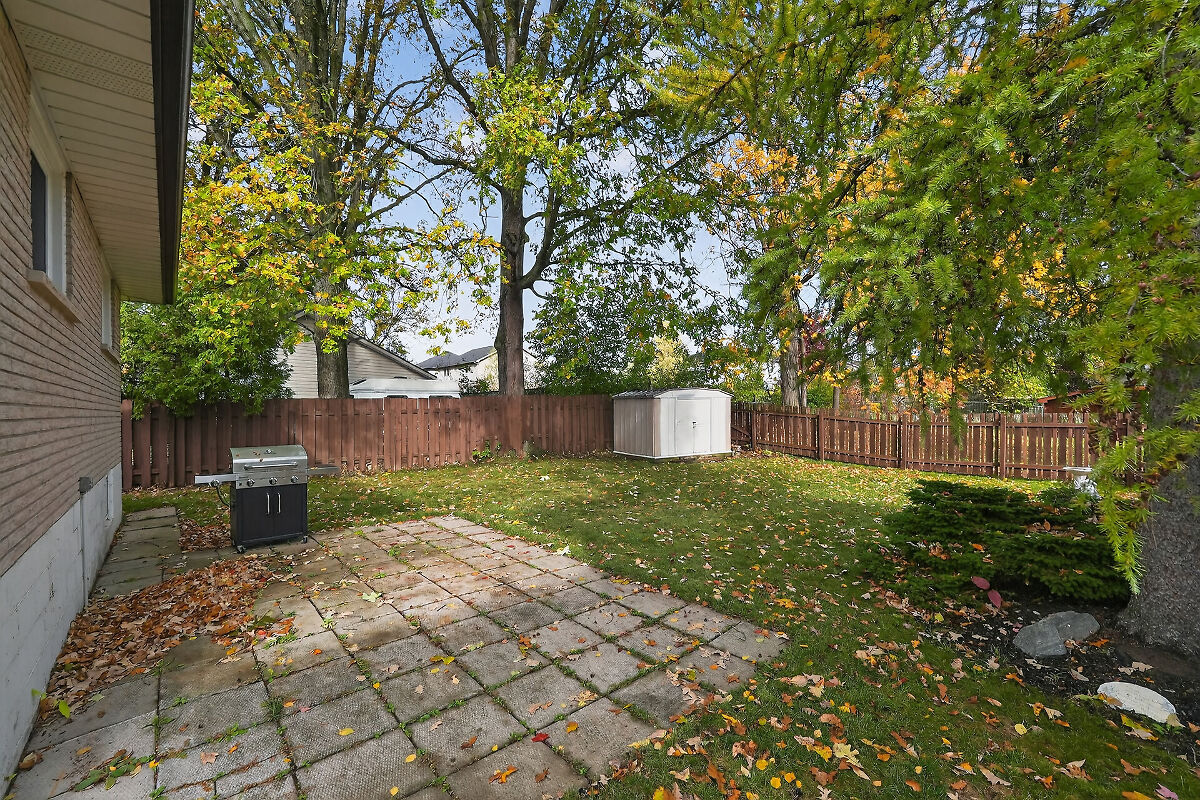 This move-in ready elevated bungalow offers 3 spacious bedrooms, a 4-piece main bath, and an updated kitchen with granite countertops and central island perfect for entertaining. Bright open-concept living room with hardwood floors. Lower level includes a large family room, 4th bedroom, versatile hobby/play space, and a private fenced yard with patio and storage shed.