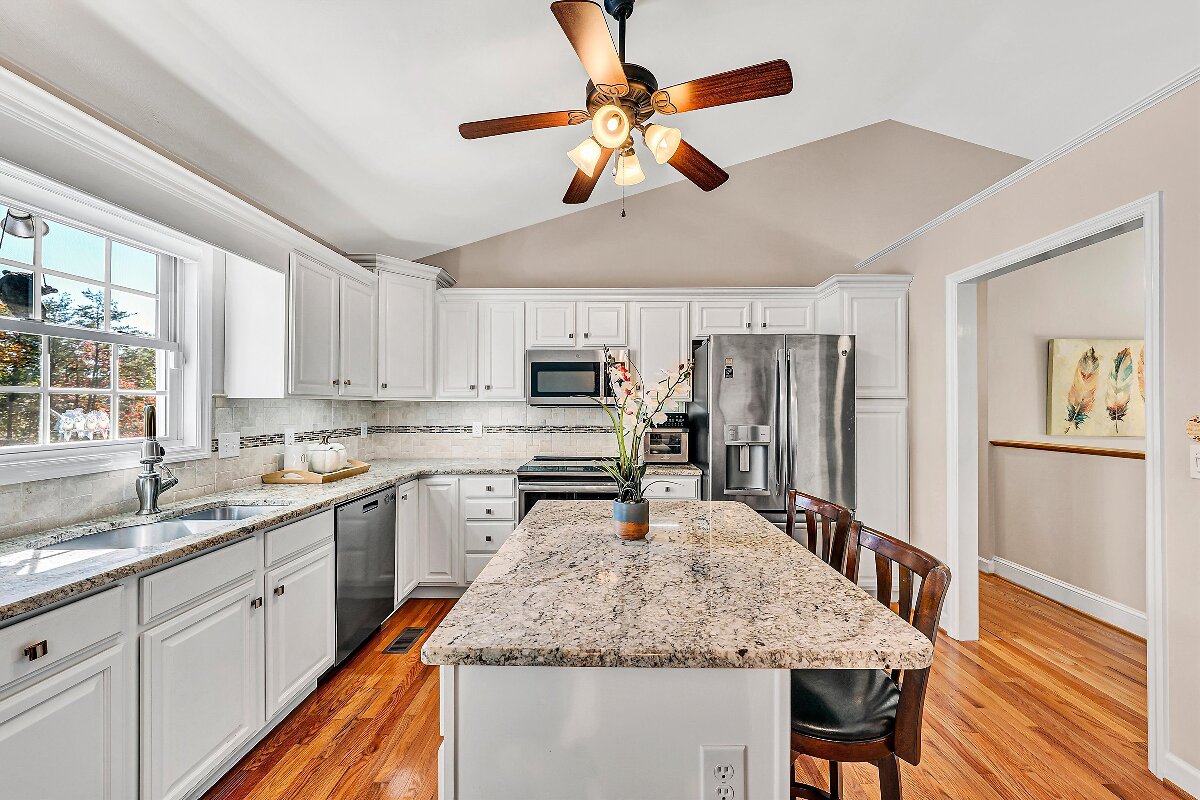 Beautifully maintained and landscaped home. Fall in love with all the updates including granite countertops in the kitchen w/ tile backsplash, lots of cabinet space and is a cooks dream with SBS stainless fridge , induction cook top, regular/convention oven, microwave. Living Rm, Dining and Kitchen with wood floors, Large 4 season sunroom Nestled on 1.4 acres on a very gentle lot.