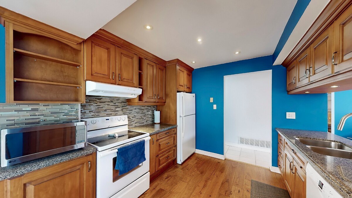 Welcome to 14 Myna Cart! This move-in ready 3+1 bed, 2-bath detached home sits on a premium pie-shaped lot with no neighbors behind and a saltwater pool. Features include open living/dining, family room with fireplace & walkout, updated kitchen with granite counters, finished basement, hardwood floors, 2-car garage + 4-car driveway. Close to schools, parks, rec centers, transit & shopping!