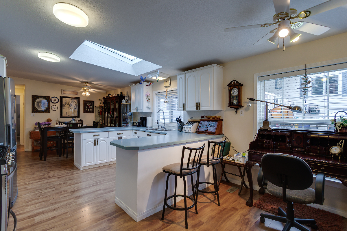 This beautifully kept 2-bedroom, 2-bathroom double-wide home offers comfortable, low-maintenance living in a quiet 55+ complex. Situated on freehold land with no pad rent, this property provides exceptional value with a low strata fee of only $85/month.