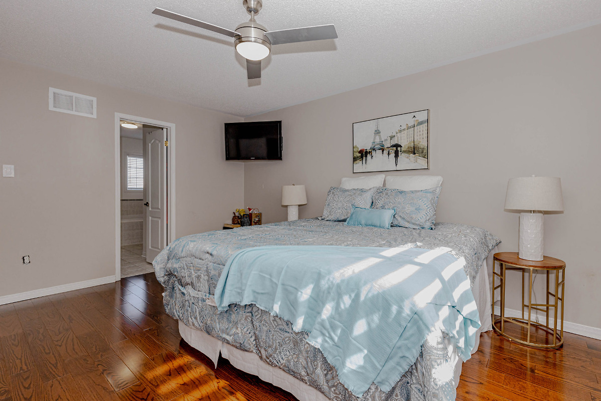 Stunning corner-lot 4+2 bedroom, 5-bathroom detached home with 9-foot ceilings and a bright open layout ideal for family living and entertaining. Features a modern kitchen with ample storage, spacious family room, and private primary suite with elegant ensuite. Professionally upgraded with metal roof, paved front/backyard, sprinkler system, fiberglass gazebo, and beautiful perennial landscaping.