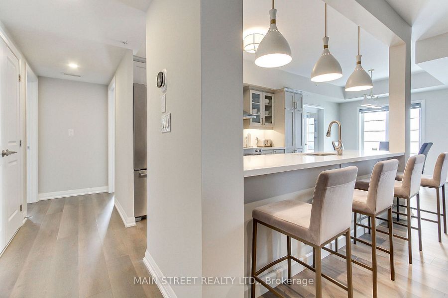 Welcome to 20 Koda Street, Unit 402, a stunning top-floor condo in the heart of Barrie offering 1,464 sq. ft. of beautifully upgraded living space. This spacious corner unit boasts an open-concept layout with abundant natural light, featuring modern finishes and thoughtful upgrades throughout. The upgraded kitchen showcases quartz countertops, stainless steel appliances, and stylish backsplash.