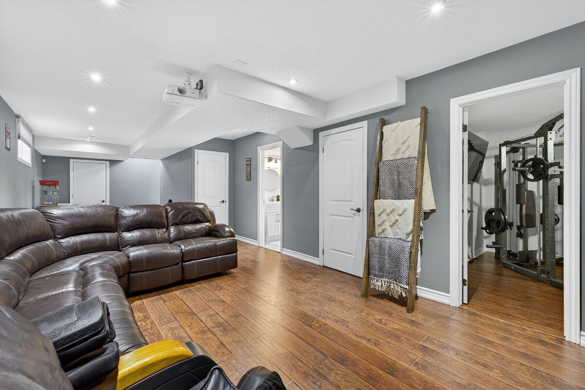 Fully finished & well-maintained home offers a spacious main floor featuring a primary bedroom with a 5-piece ensuite, main floor laundry & powder room. Freshly painted kitchen with walk out to backyard, bright upper level loft sets up well for guests. Additional bedroom, bathroom, workout room & entertainment area on lower level.