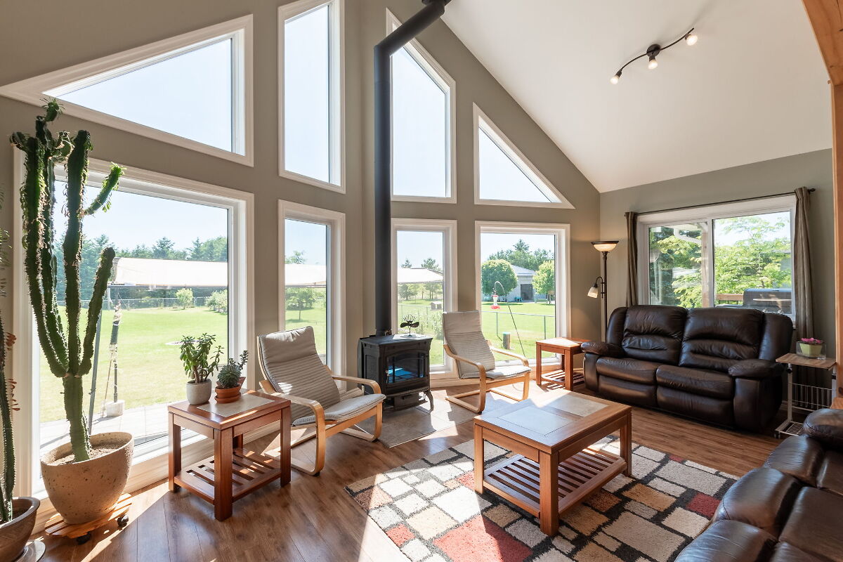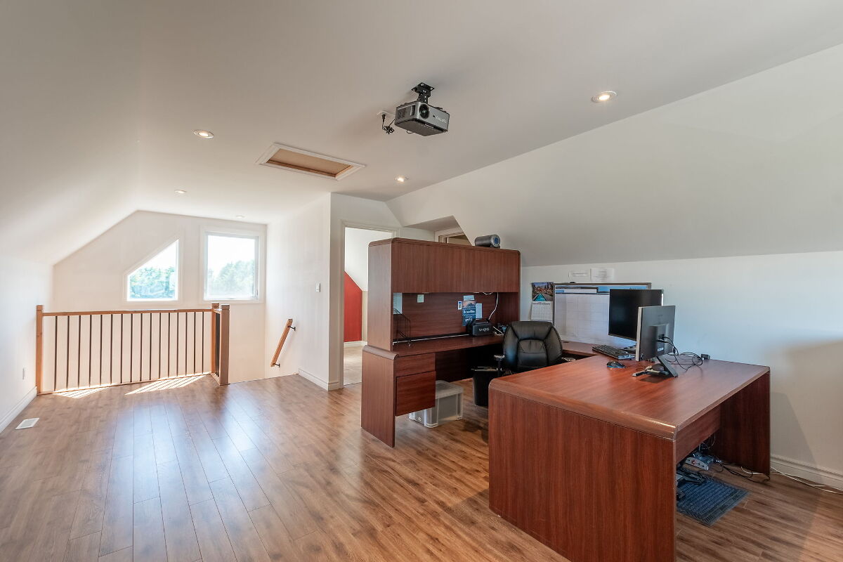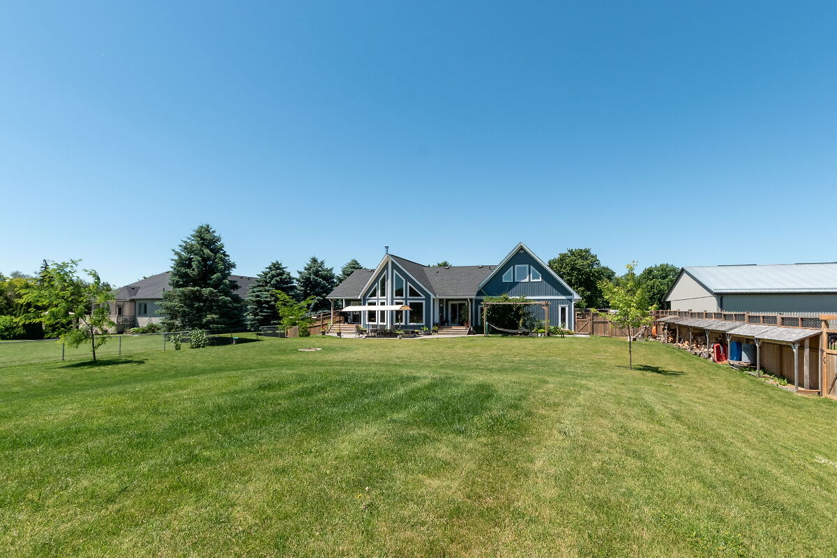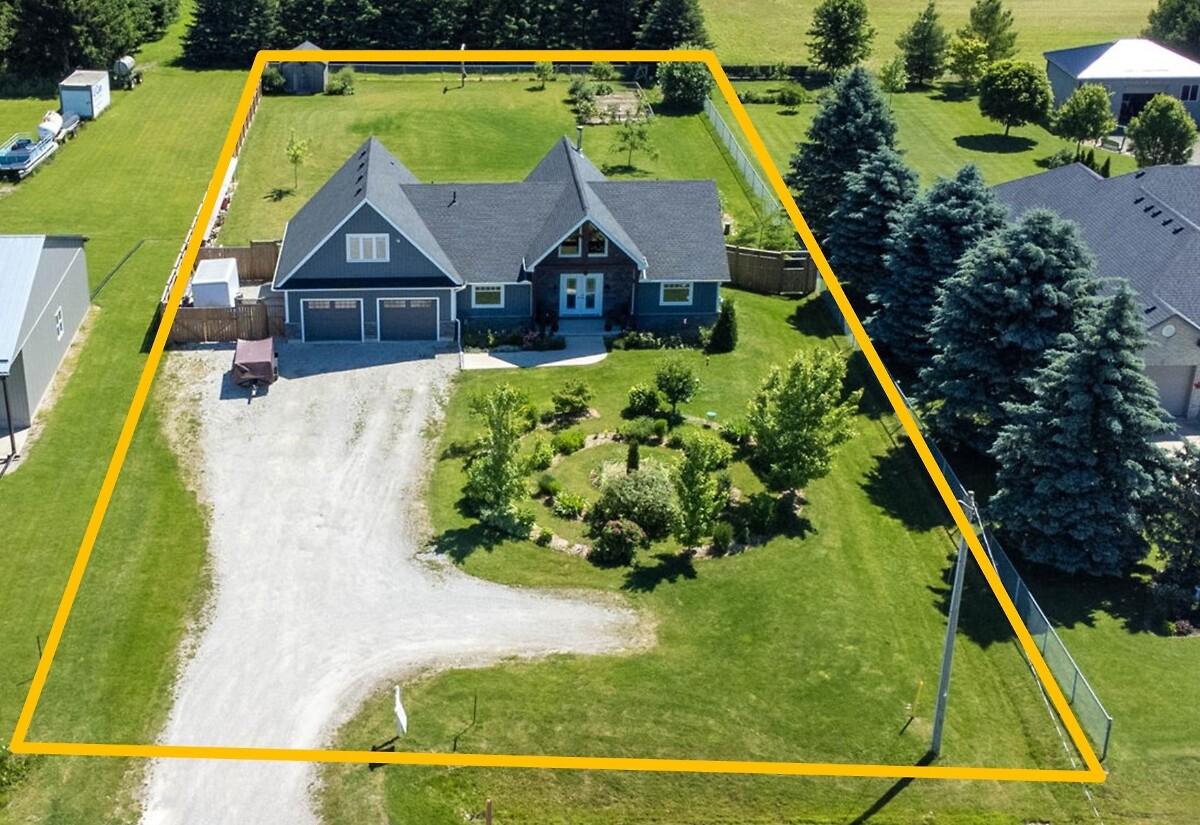 Attractive custom-built residence with oversized double attached garage on almost 3/4 ACRE lot surrounded by picturesque countryside in the hamlet of Bryanston north of London. This beautiful home is ideal for a home-based business with a self-contained 2nd-floor loft and office area with private exterior access + a huge garage/workshop complete with heat, hydro, water & Air condition! Custom built in 2017.