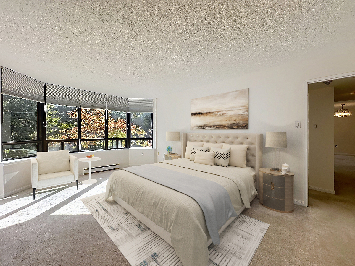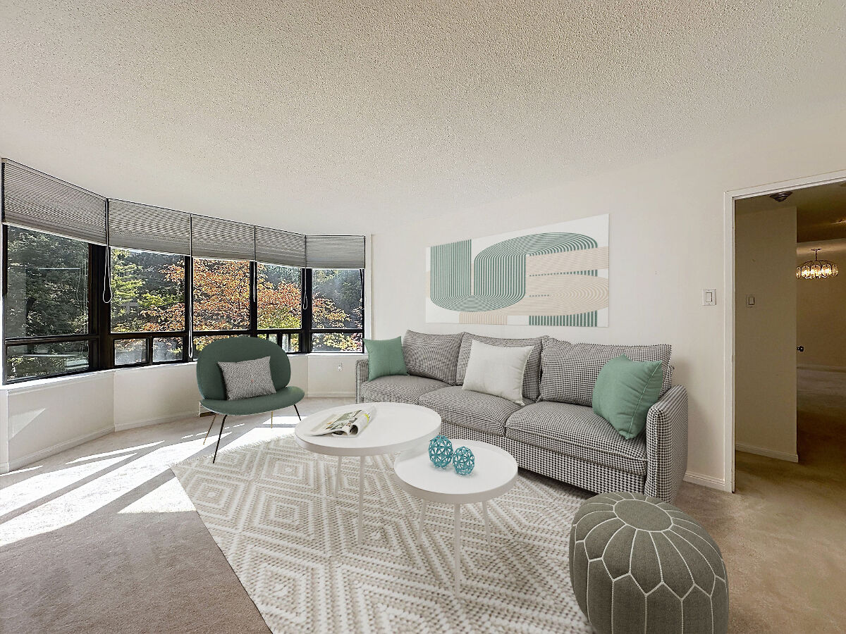 New Price! This rare 1,400 sq. ft. 2-bed, 2-bath suite—only one per floor—hasn’t been on MLS since 2012. Enjoy bright east exposure overlooking landscaped gardens and a courtyard fountain. In coveted Village Mews, with flowing open design and pristine condition, it’s your perfect canvas. Walk to Shops at Don Mills, transit, and more—minutes to DVP & Hwy 401.