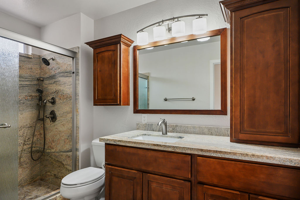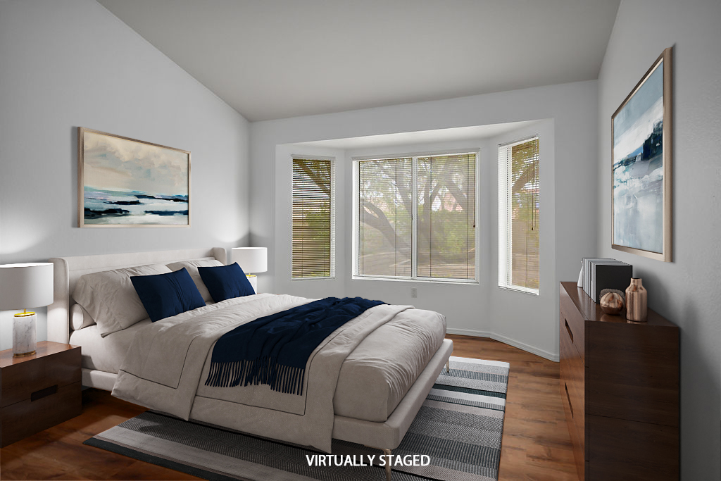 Beautifully remodelled 2-bedroom 2-bathroom home in popular Sun City Summerlin 55+ community*home features modern plank flooring throughout*stainless steel kitchen*custom cabinets & gorgeous white counter tops*primary bedroom walk-in closet, bay window & en-suite bathroom, large lot & rare fully fenced yard* live the Sun City life! 3 golf courses, pools, tennis, and pickleball.
