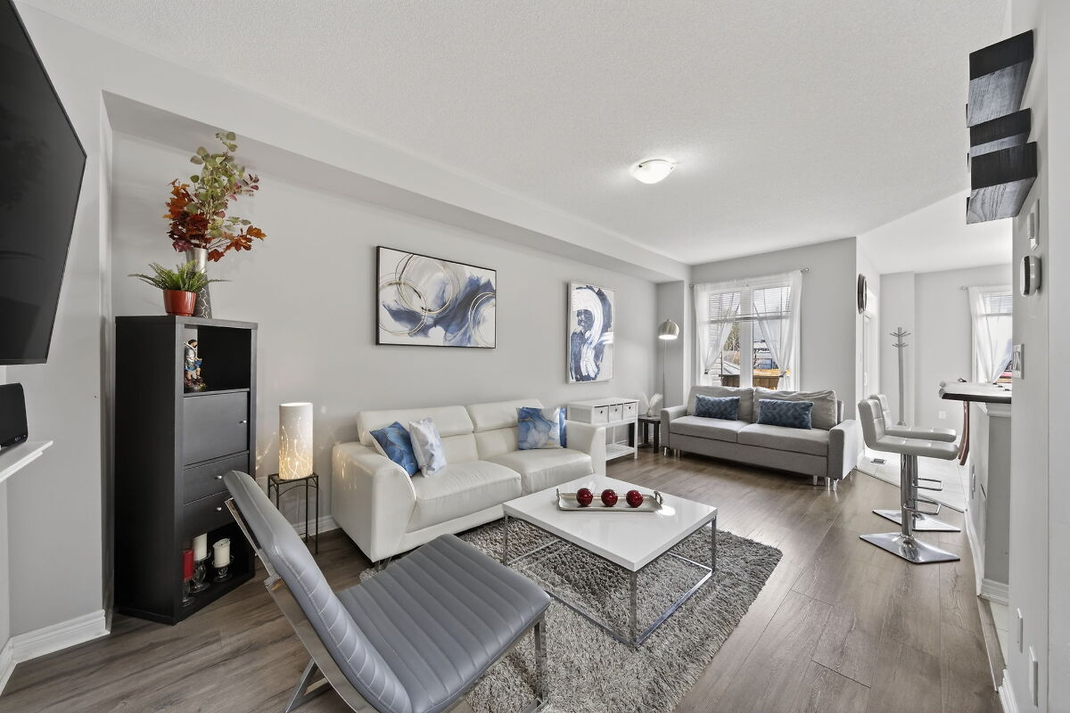 Amazing, Sun-Drenched Freehold Three Large Bedroom End-Unit Townhome (* NO SIDEWALK*) Backing Onto Ravine! 9 Ft Ceilings On Main, Open Concept, Bright Combined Living, Dining, Kitchen & Huge Breakfast Area with walk-Out To Large Deck! Three Generously Sized Bedrooms All Feature Great-Sized Closets & Large Windows!