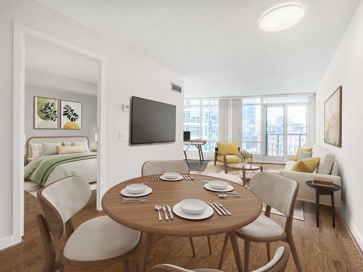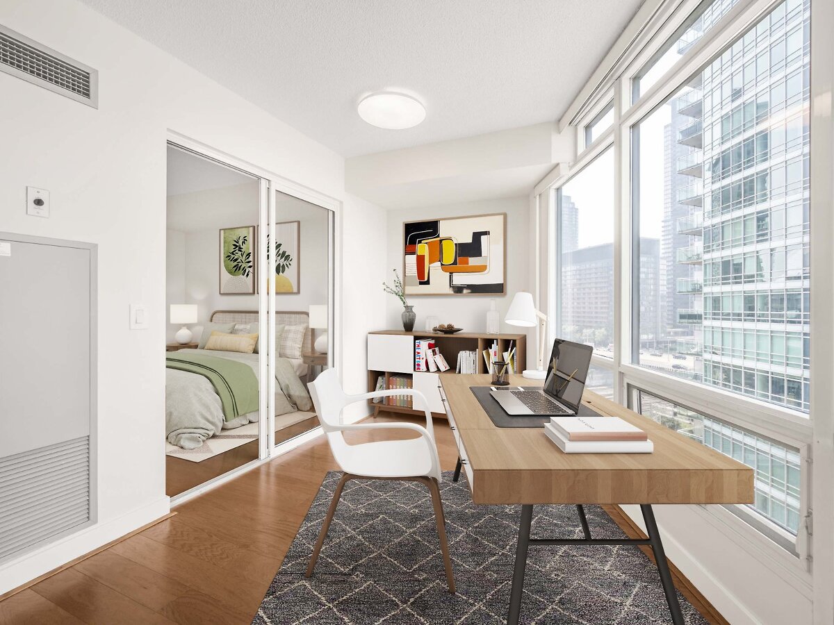 Welcome to 373 Front Street Where Urban Living Meets Comfort and Style. This bright and spacious 1-bedroom plus den suite offers the best of downtown Toronto living. With 636 sq. ft. of intelligently designed, unwasted space, the layout is perfect for both everyday living and entertaining. Enjoy great west-facing views that fill the space with natural light from morning to sunset.