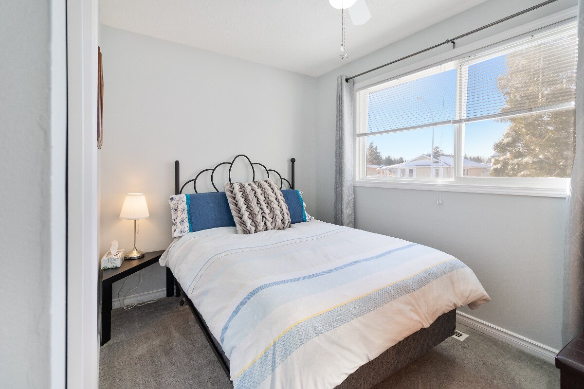 Cute as a button bungalow in Gibbons! Featuring 3 bedrooms on the main floor, an updated kitchen with island, refreshed bath, newer flooring, and bright natural light. Finished basement with large family room and storage. Enjoy a big deck, fenced yard, raspberries, shed, rear parking, and direct access to the park with spray park, courts, and trails. Minutes to north Edmonton!