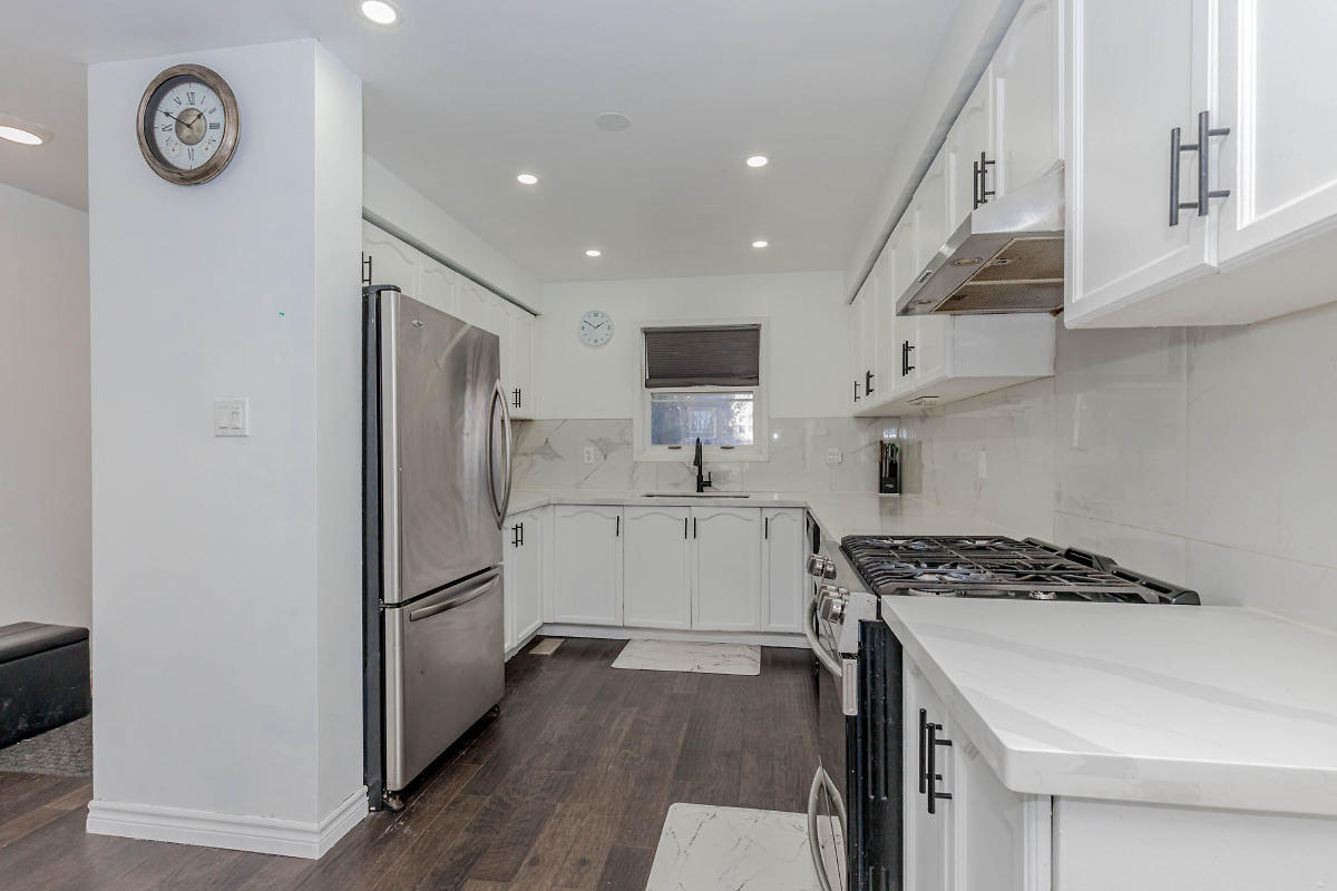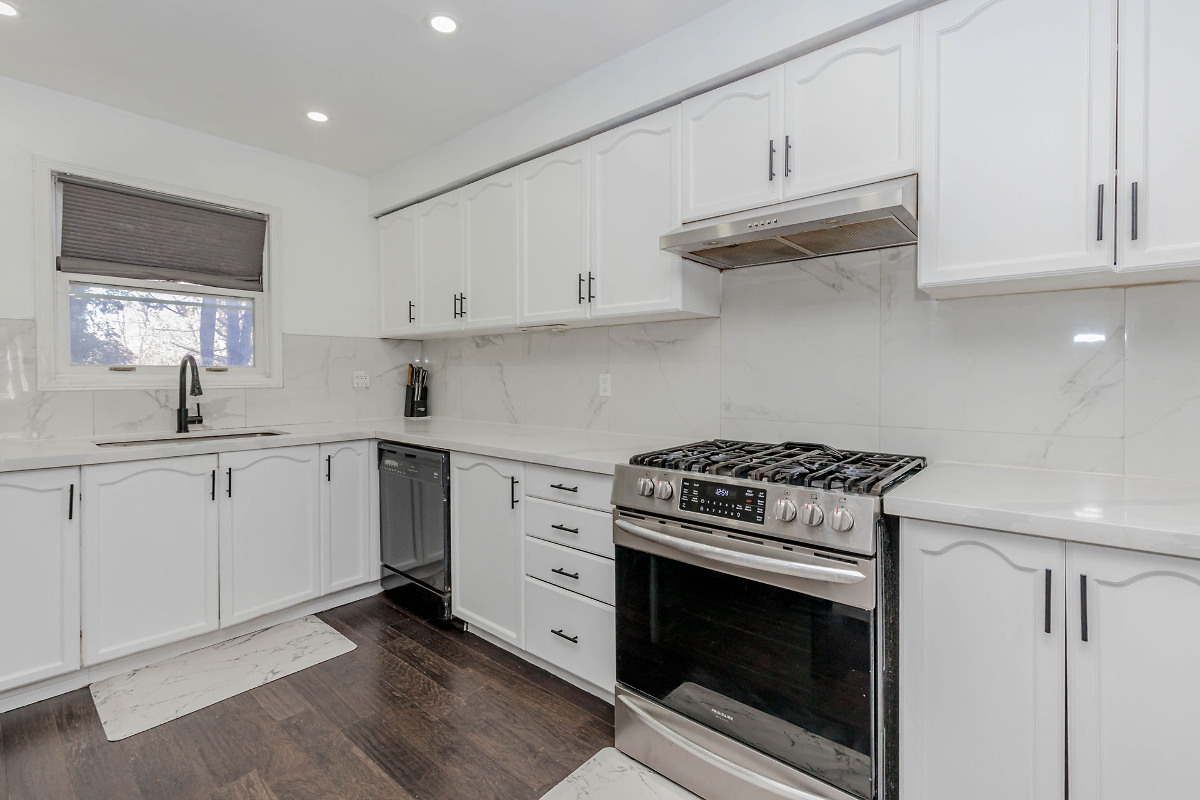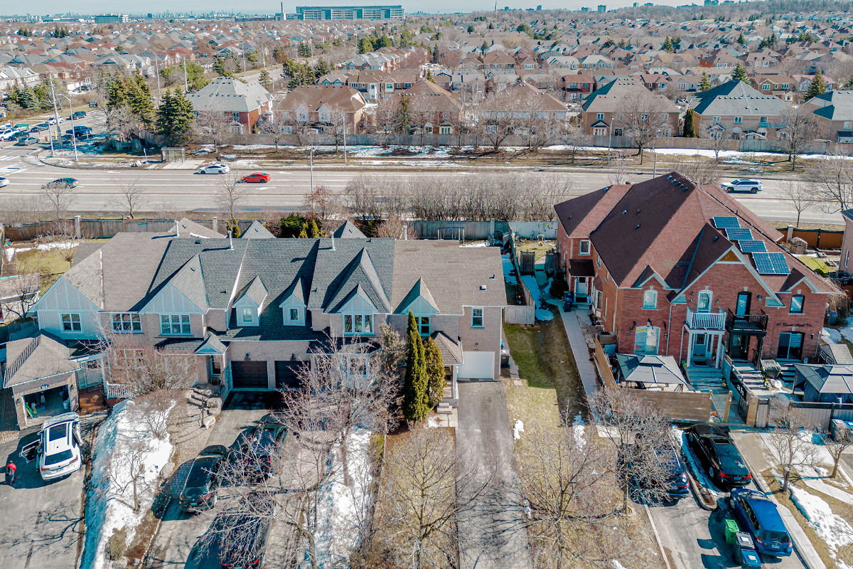 Beautiful 36 foot freehold corner townhouse in desirable Springdale on a rare extra-deep lot that feels like a semi. Bright layout with large windows, updated eat-in kitchen, new laminate floors and fresh paint. 3 spacious bedrooms plus finished basement with separate legal entrance offering rental or in-law potential. Private backyard with no neighbours behind and tons of parkings spots.