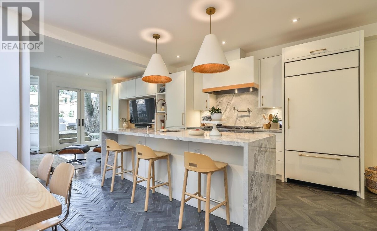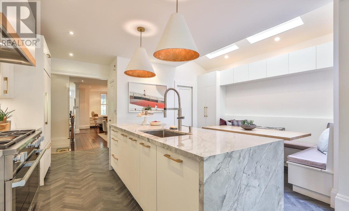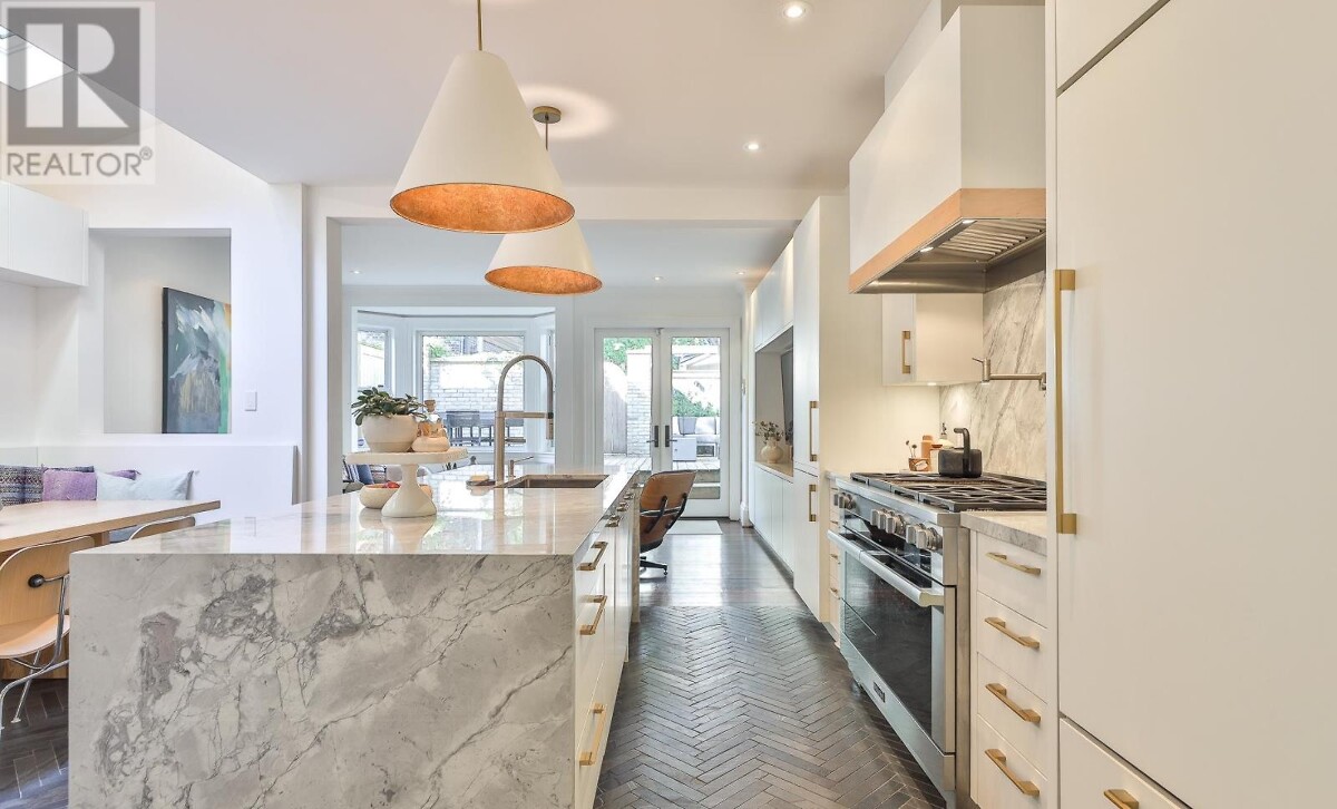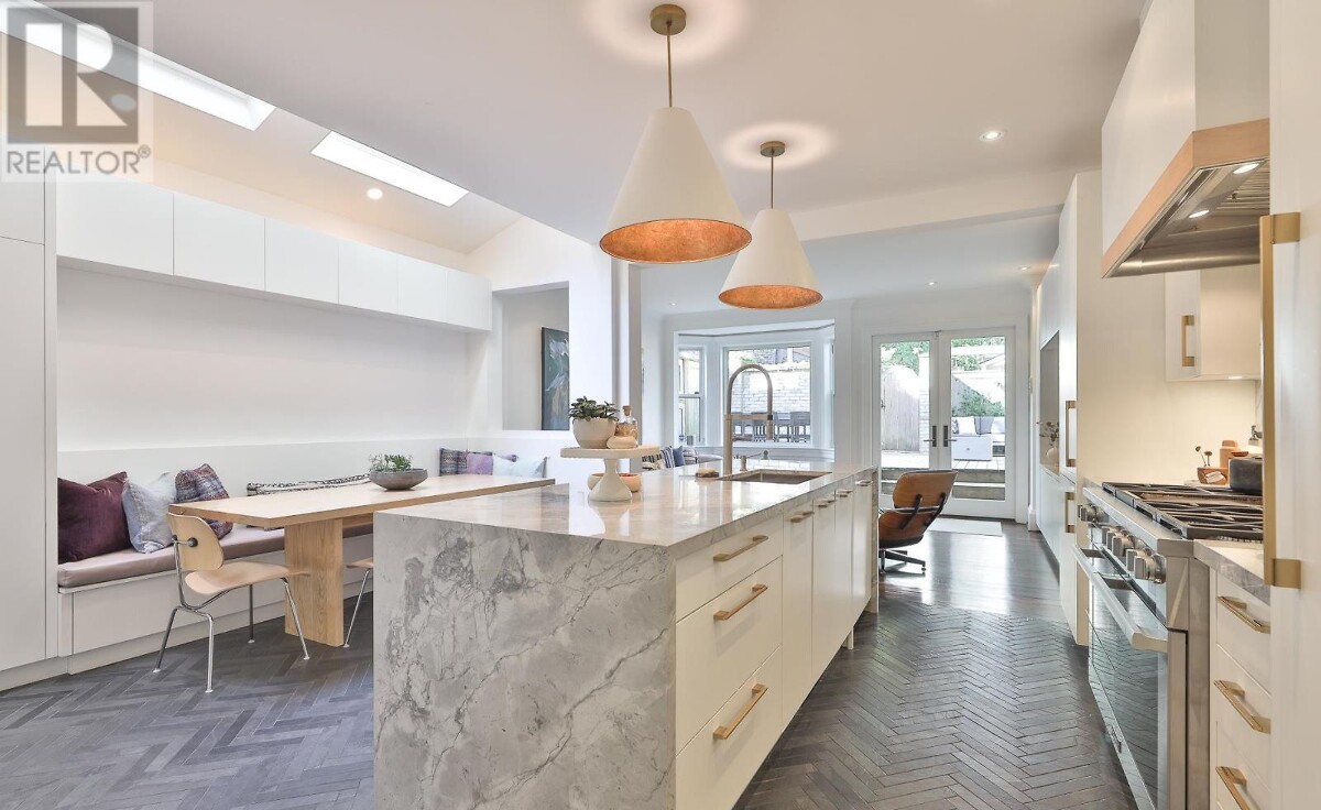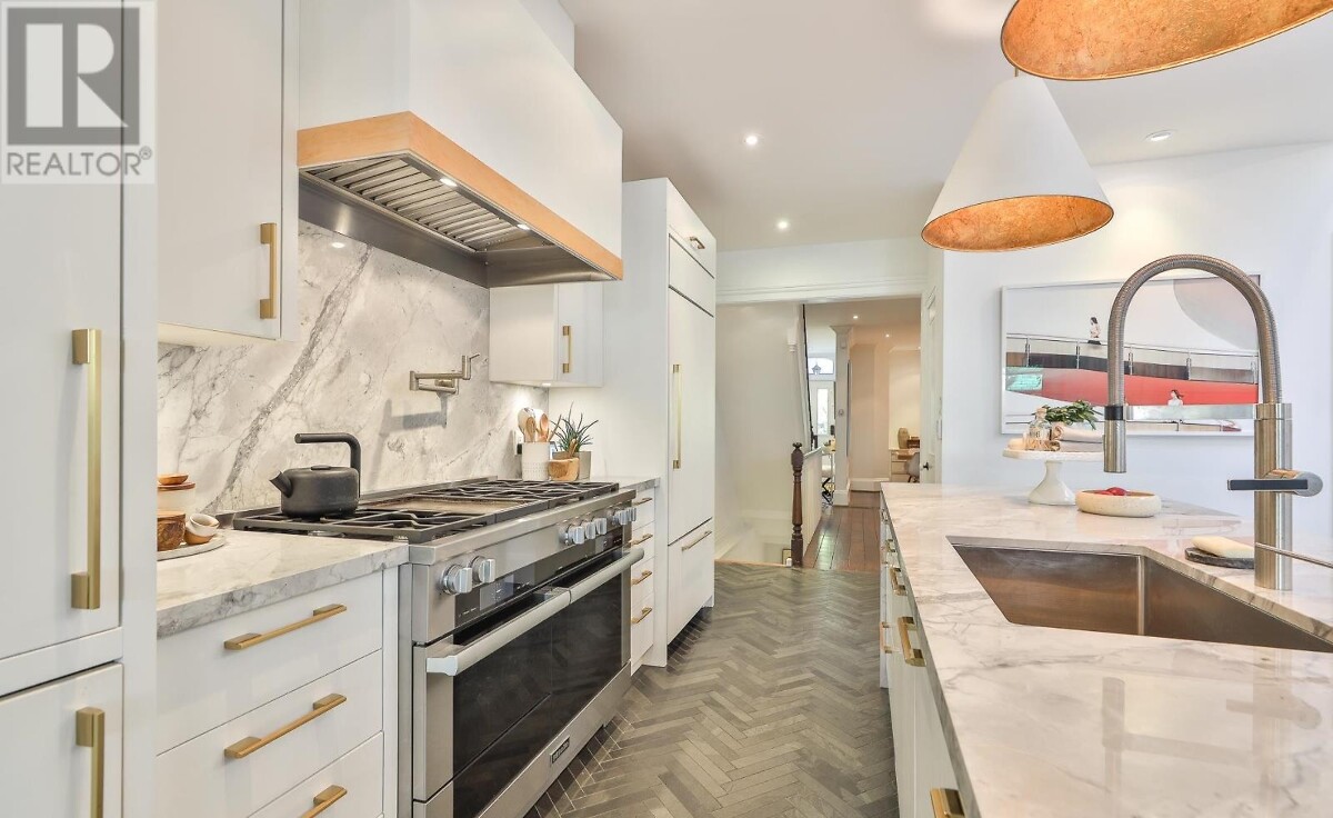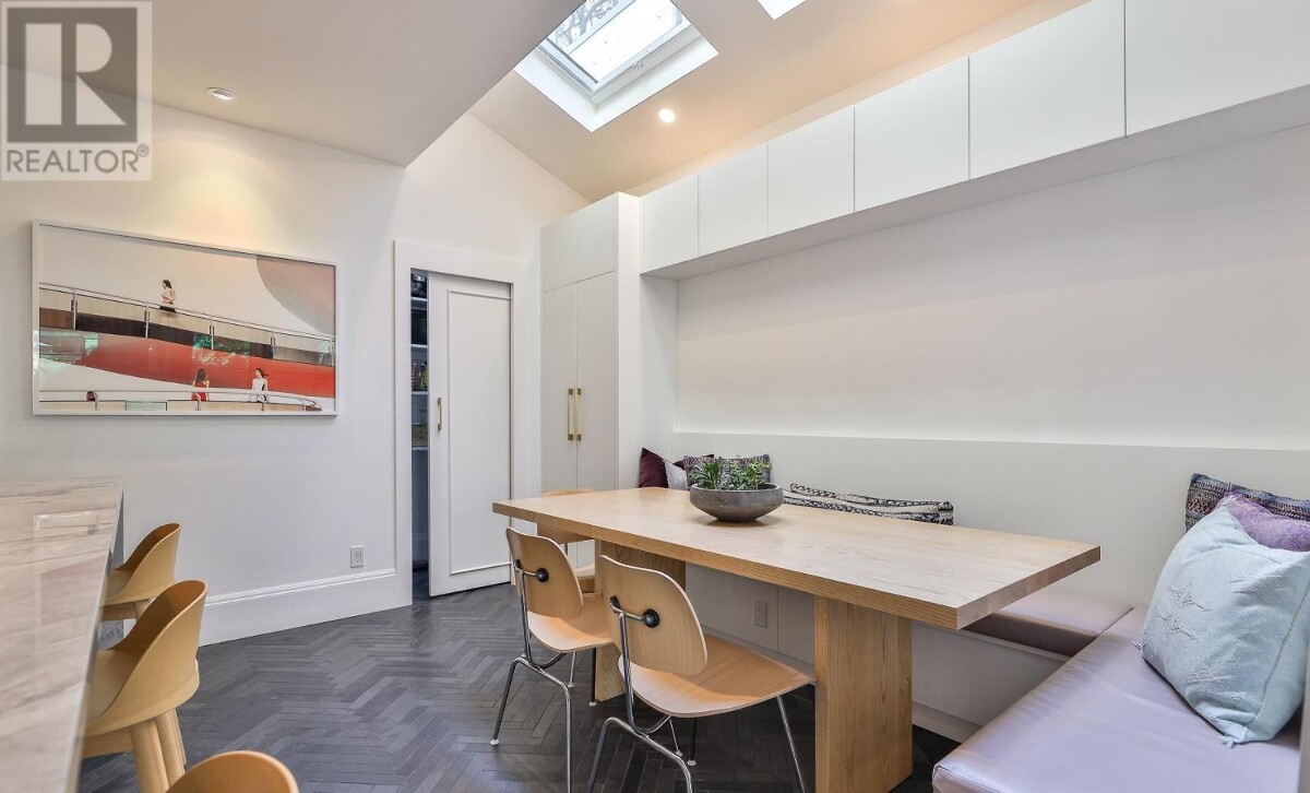 Behind this charming heritage façade lies a fully renovated Cabbagetown gem blending historic charm with modern function. Rare features include parking, front hall closet, powder room, family room, and ample storage. Enjoy a sunlit Miele kitchen with skylights, bay window, quartzite island, & pantry; a king-sized primary suite with steam shower; lower level with gym, media room, & 2024 cedar roof.