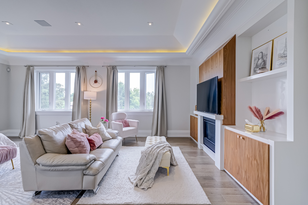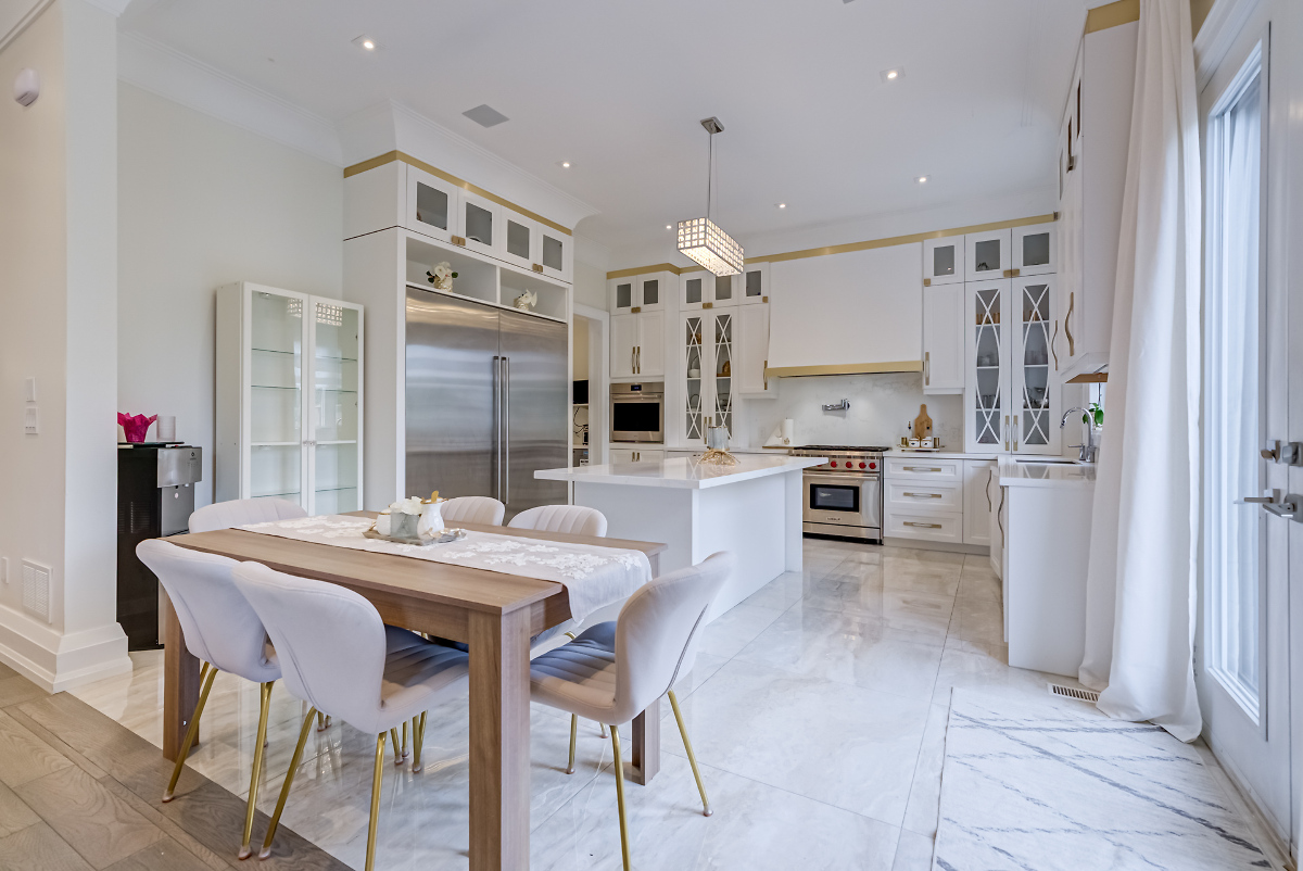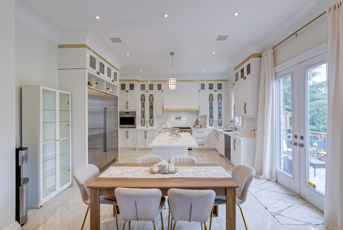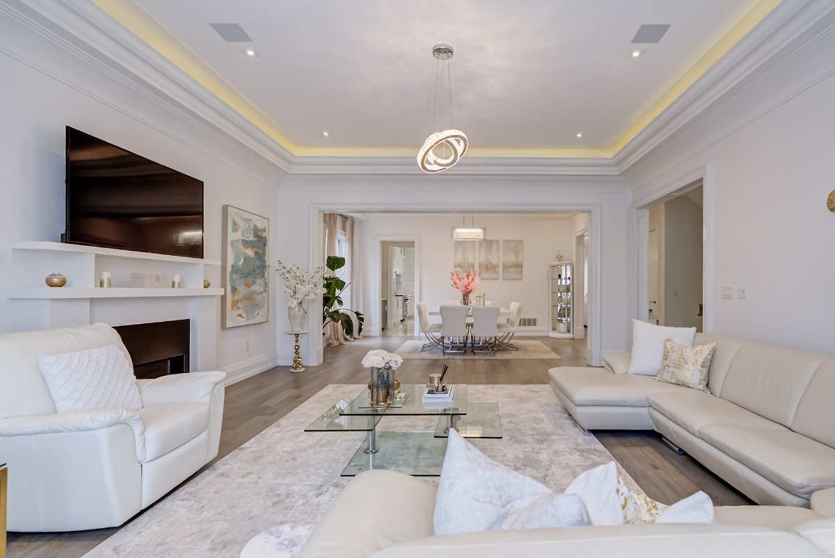 Luxury Custom, New price 5800 sqft with 4+1 bedrooms (all with ensuites), 7 bathrooms, 4 gas fireplaces, steam room, private elevator. Soaring ceilings for the 3 floors, limestone façade, crown moldings, waffle ceilings, ambient lighting. Chef's Kitchen: Sub-Zero & Wolf app.2 Miele dishwashers, quartz counters, custom cabinetry. Finished Sep. entrance. 5-zone sprinkler, 6 cameras 2.75%