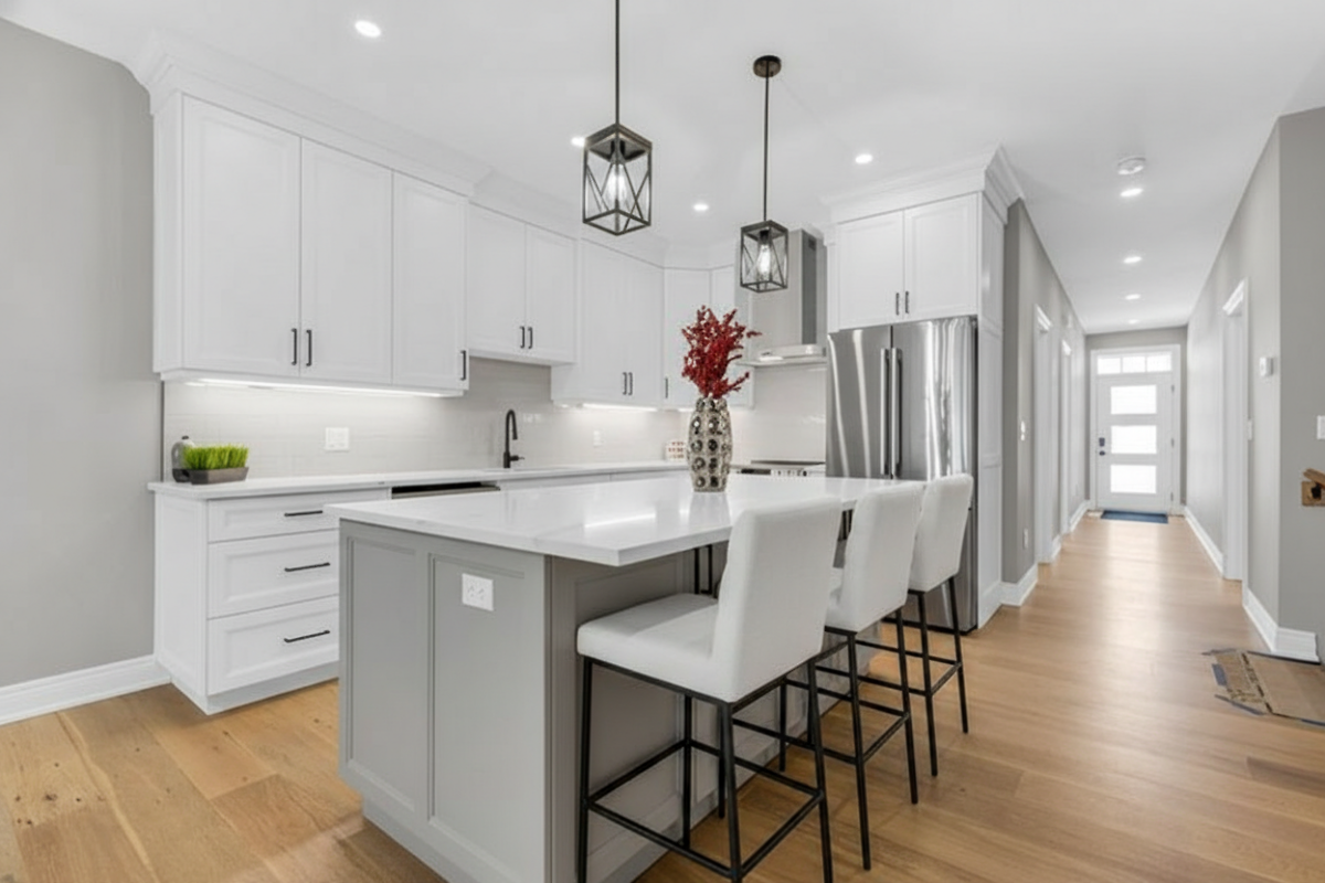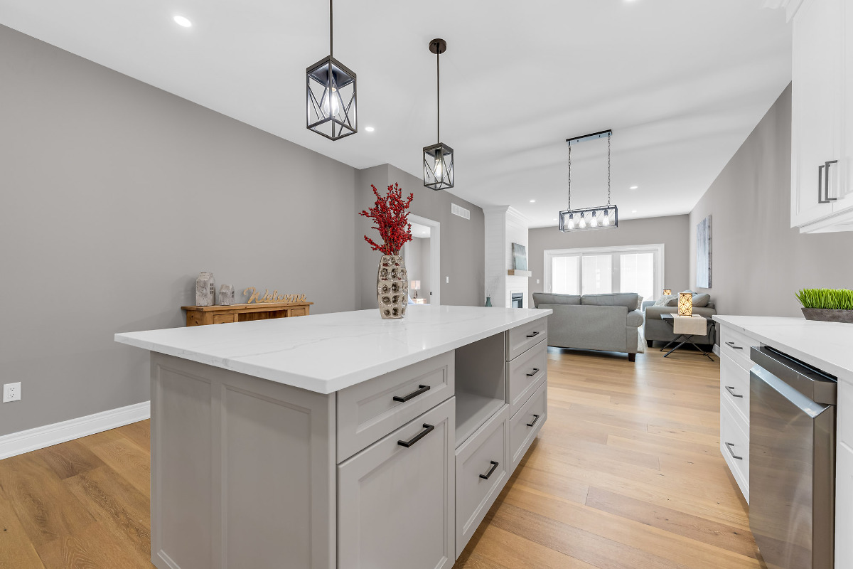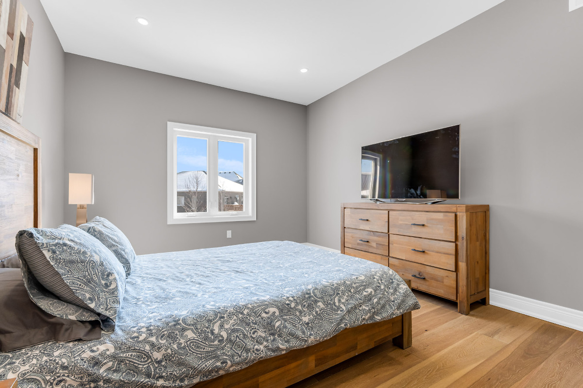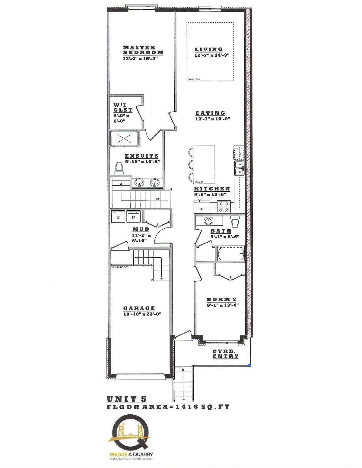 Bridge and Quarry Built brand new freehold bungalow townhouse with a 7-year Tarion Warranty. Concrete driveway, Quartz countertops, 9-foot ceilings, custom cabinets, engineered hardwood floors, and a single-car garage. Appliances included as well as Air Conditioner and a gas fireplace with a remote and blower kit. Move-in ready!!!
