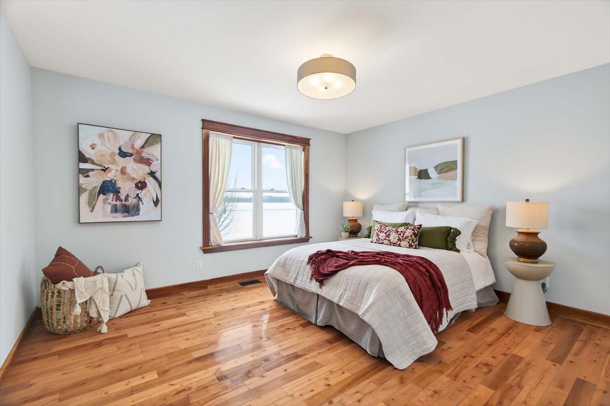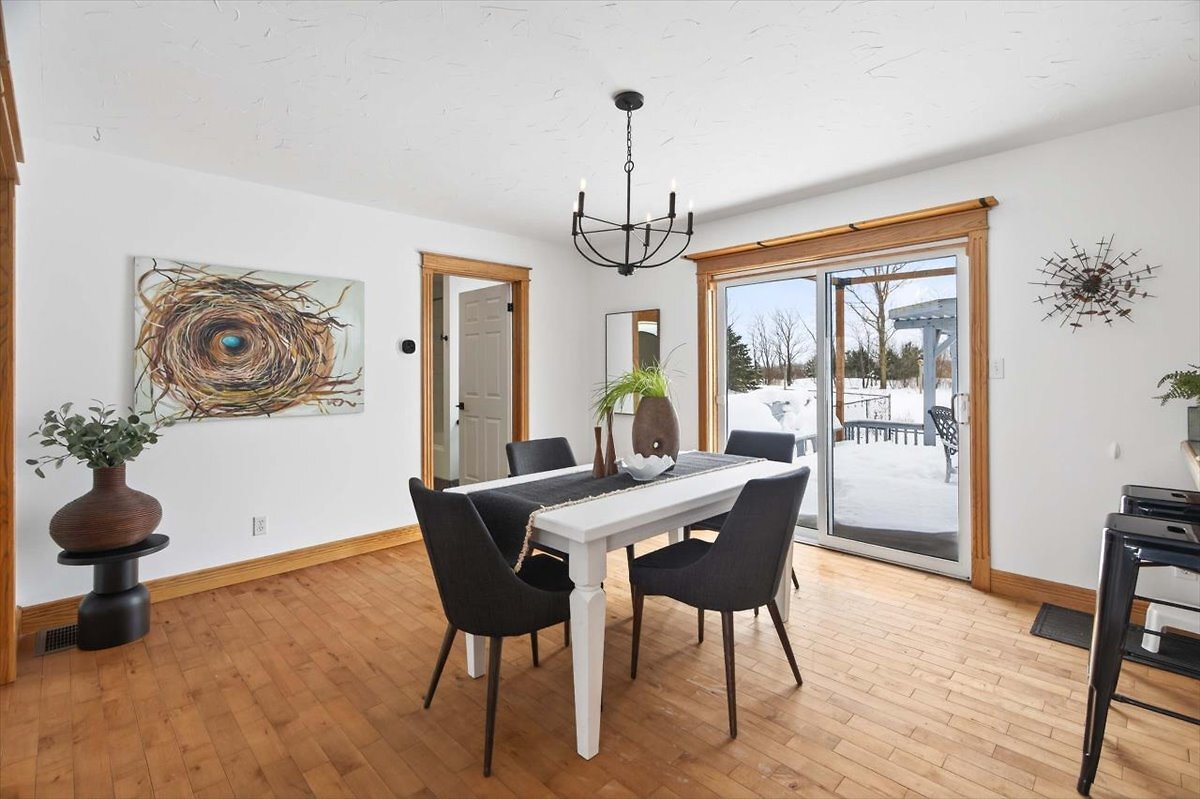 Set on 1.39 acres with sweeping views front & back, this move-in ready 1.5-story offers 3–4 bedrooms, 3 bathrooms & 2,118 square feet of living space. Bright kitchen, main floor primary & laundry, finished walk-up basement, fenced yard & 2-tier deck for sunset views. Pond, porch & privacy included. A must-see!