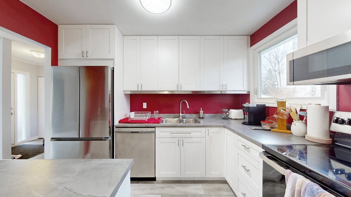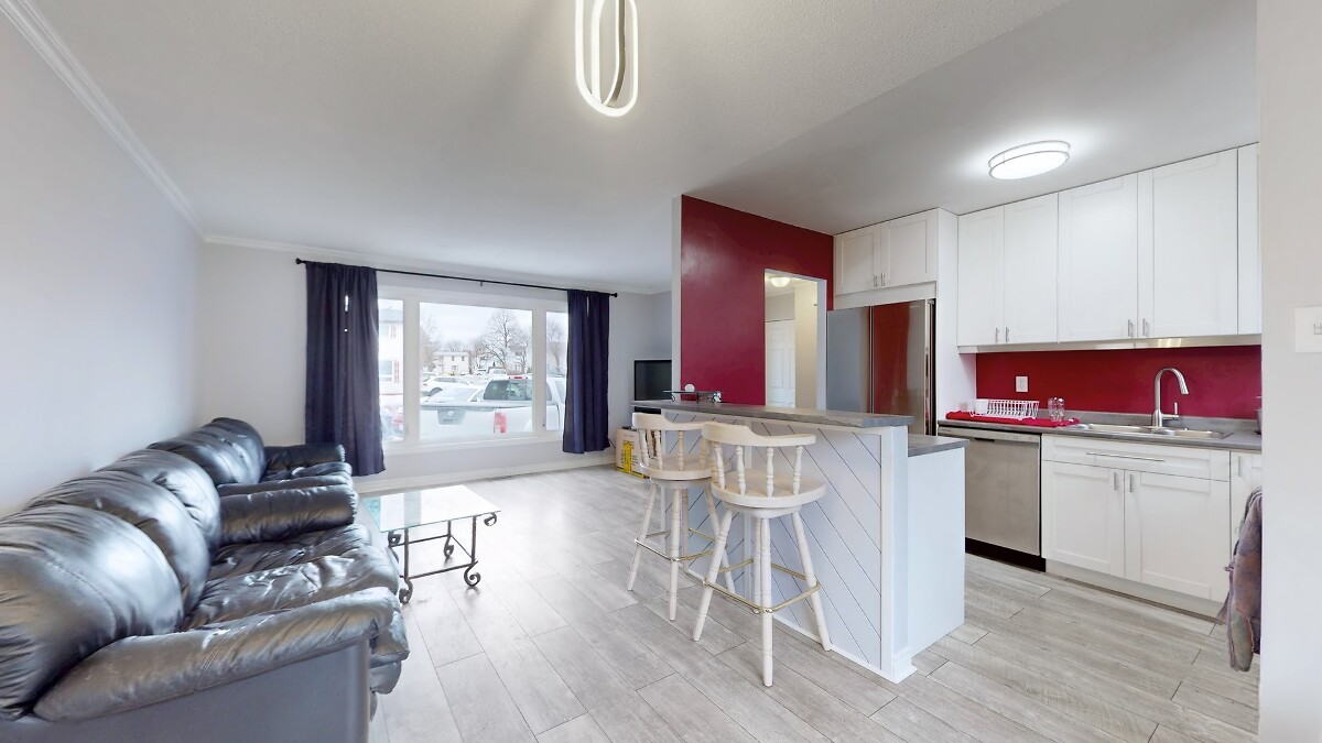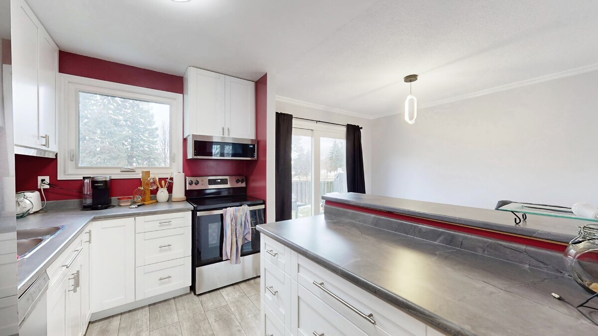 Rarely available, updated detached bungalow, move-in ready. Ideal for downsizers, first-time buyers & investors. Bright open-concept living/dining with laminate floors, renovated kitchen with stainless steel appliances & breakfast bar, 2 bedrooms & 4-piece bathrooms. Lower level offers great potential with laundry. Private backyard with stone patio & no rear neighbours.